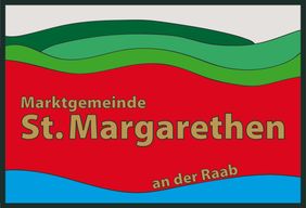 Der zweite Bereich beinhaltet den Namen Marktgemeinde St. Margarethen an der Raab und ist zwischen den beiden anderen Bereichen eingerahmt, so wie es auch geografisch in der Natur der Fall ist. Dieser Bereich wurde bewusst mit den Farbwerten aus dem Wappen der Gemeinde gestaltet um eine größtmögliche Wiedererkennung zu gewährleisten. Die Schriftart mit der der Namen der Marktgemeinde geschrieben wurde, soll ihre moderne und dynamische Marktgemeinde aber auch eine Gemeinde in der man sich wohlfühlt widerspiegeln.